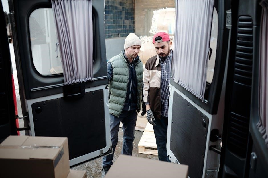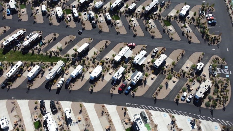Regular tire inspections are advised, checking for wear, damage, and proper inflation. The manual details tire load ranges and speed ratings, ensuring compatibility with the RV’s weight and intended travel speeds. Downloading the manual provides access to detailed charts and specifications.